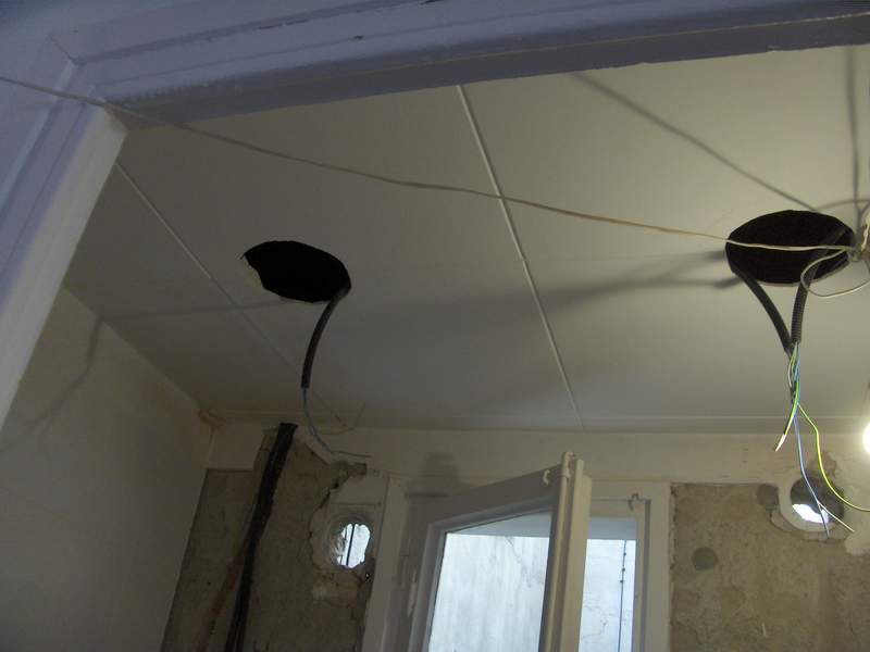 • Instalación de cableado para puntos de luz en falso techo de pladur.