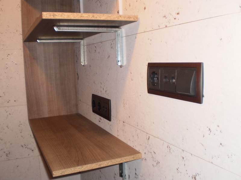 • Detalle mecanismos en pared acabada en corcho.