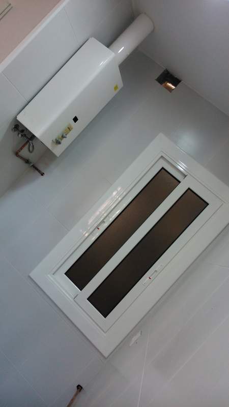 • Montaje de calentador de gas para vivienda, canalización de salida de gases quemados.